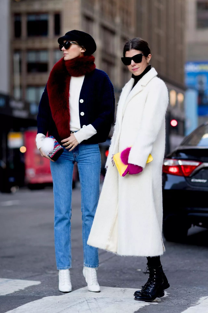 搭配厚重的衣服时,选择一双小白靴,可以给造型“减减重”,看起来没那么臃肿。▼