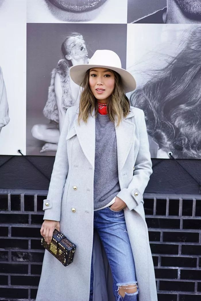 小个子穿长大衣很容易整个人被压下去,这时候只要搭配一件露脖子的圆领毛衣,露出纤细又修长的脖子个子就能“长回来”。▼